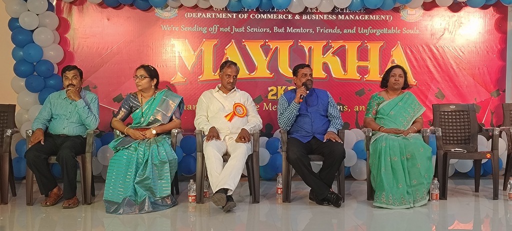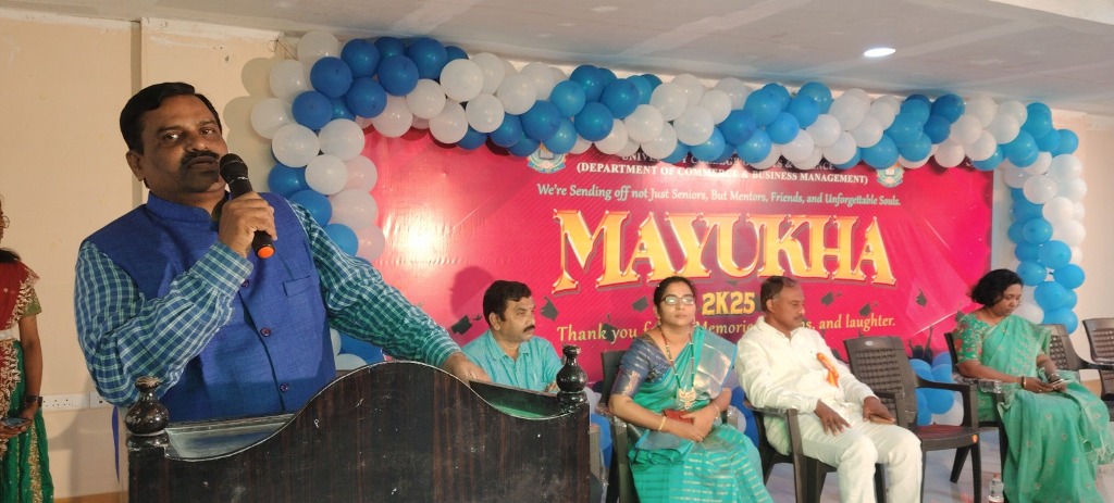Addressing in Mayukha-2025 farewell to the students of M.B.A & M.Com. as chief guest organized by Dept. of Commerce and Business Management at KRU Campus,, Rudravaram on 28-04-2025