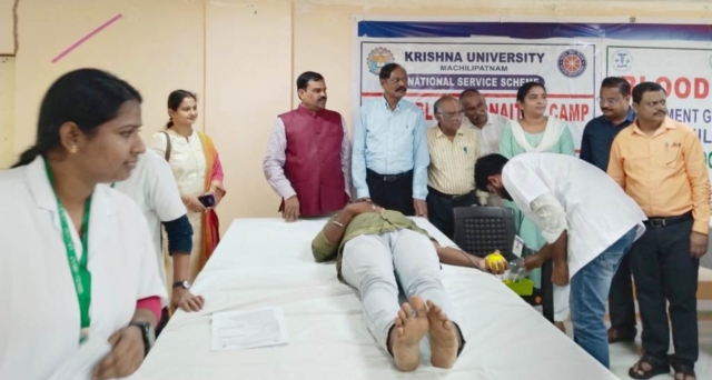 Blood Donation, Medical camp organized by NSS of Krishna University on the occasion of 134th Birthday of Bharat Ratna Babasaheb Dr. BR Ambedkar.